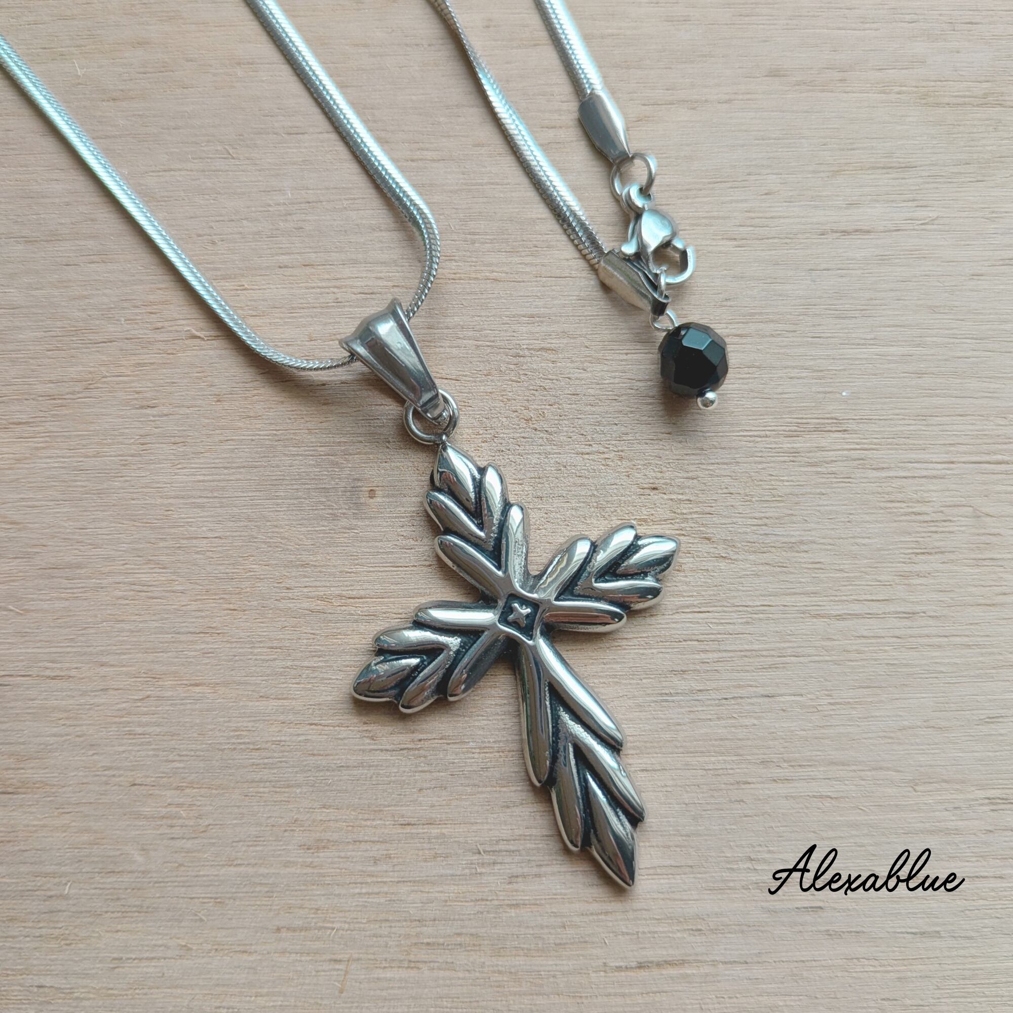 シンプルで洗練されたクロスモチーフのネックレスに、