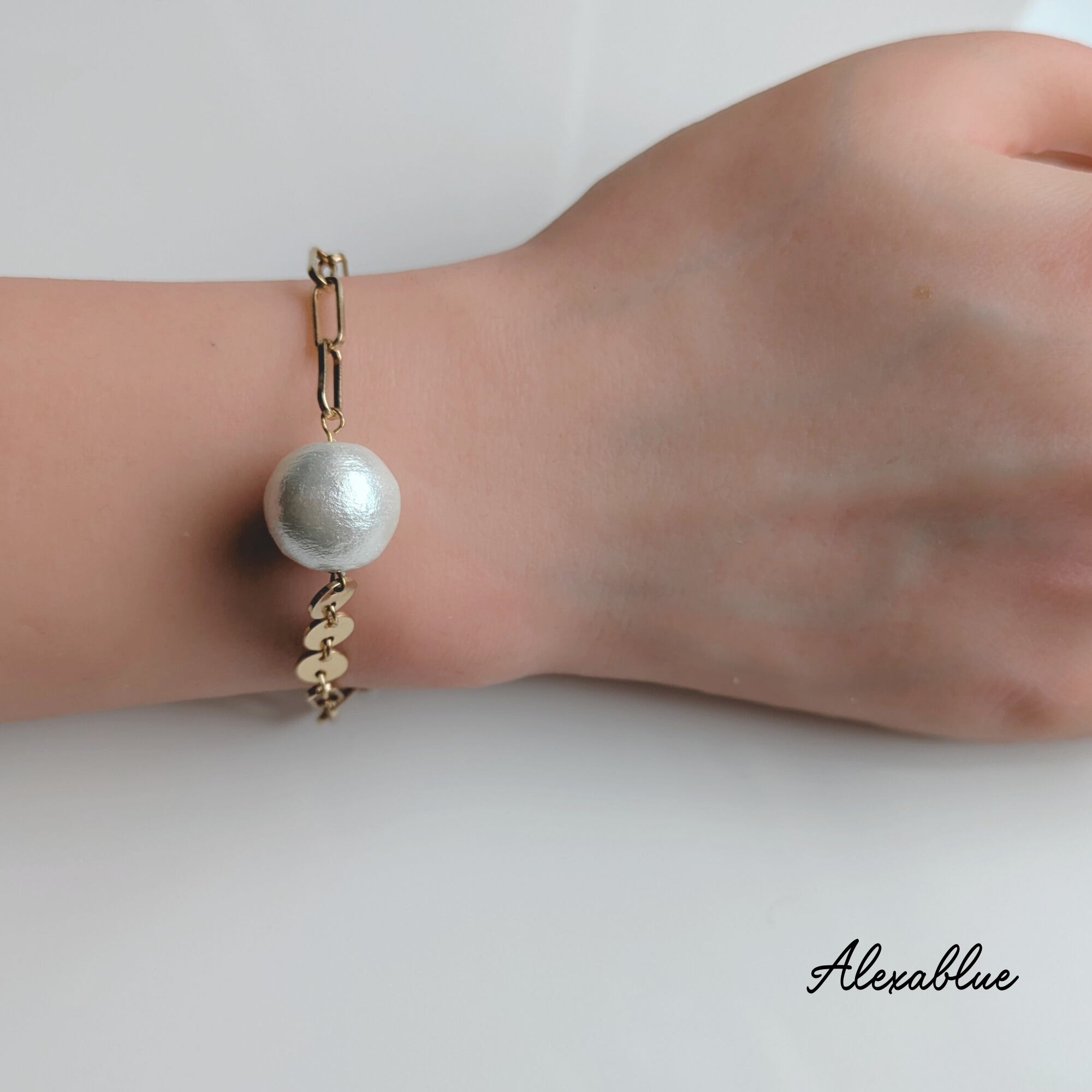 1粒コットンパールブレスレット|大きめパール 大人可愛い 華奢 レディース