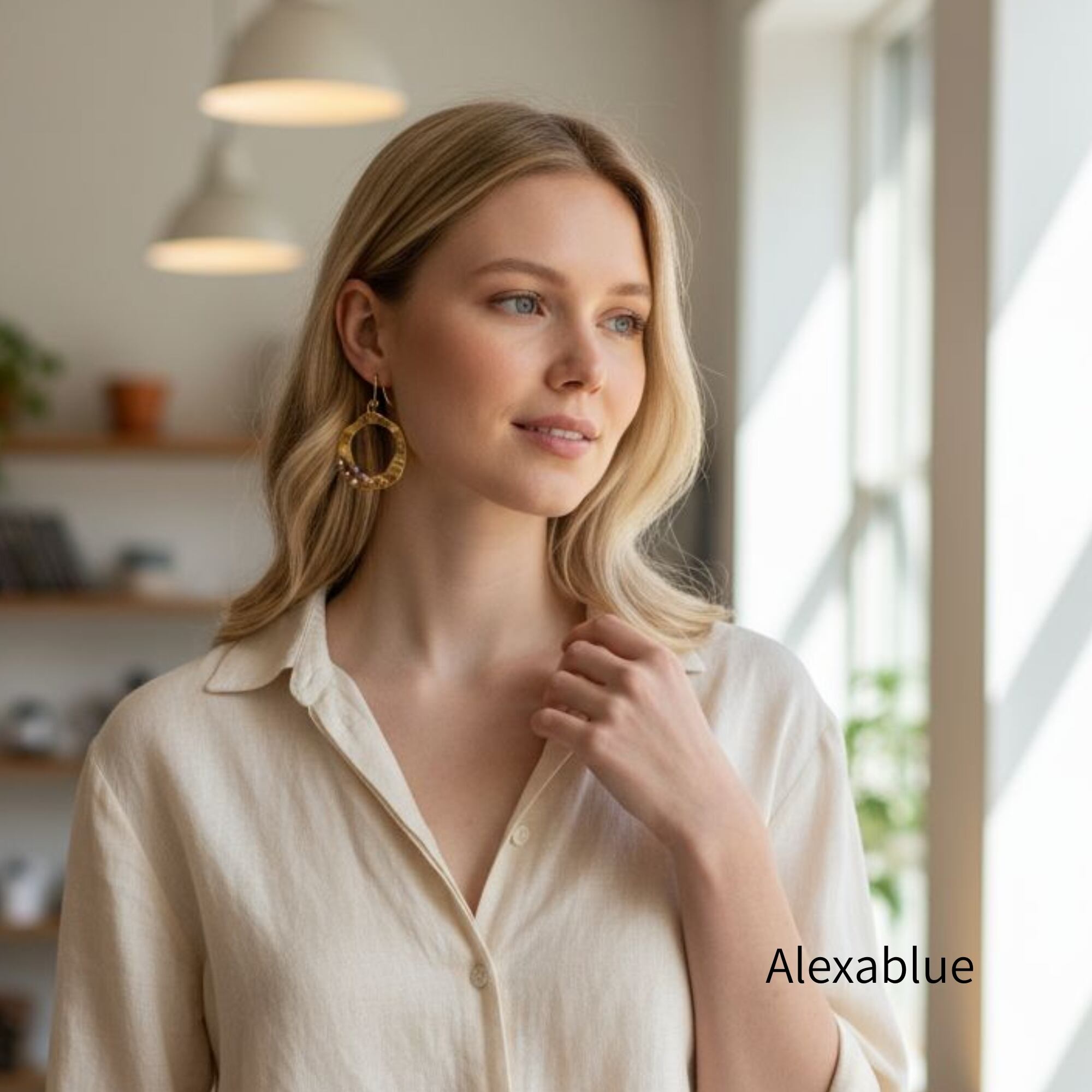 #モカパールピアス #ウェーブフープピアス #大人可愛いアクセ #上品ジュエリー #Alexablue