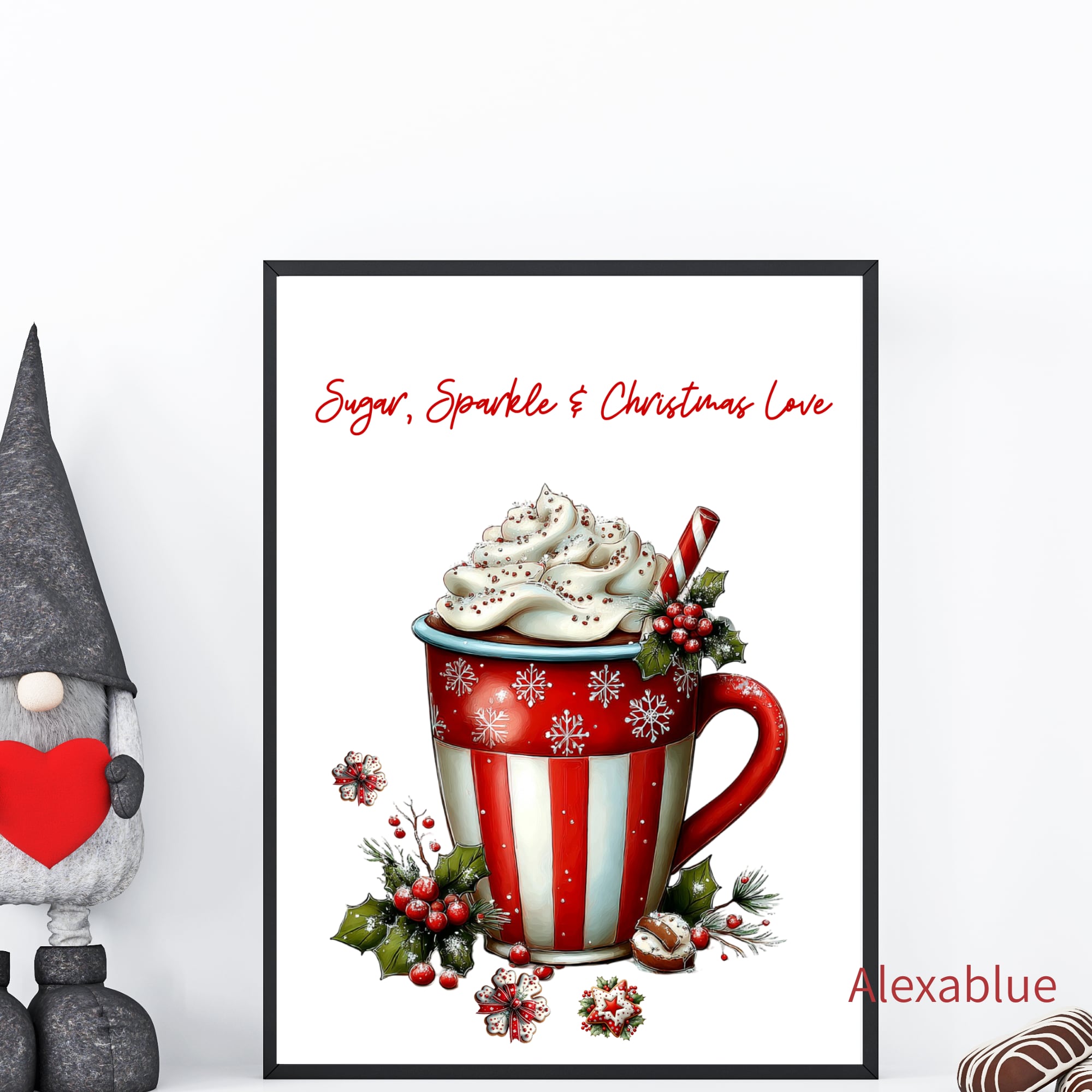 「Sugar, Sparkle & Christmas Love」 のクリスマスインテリアポスター。