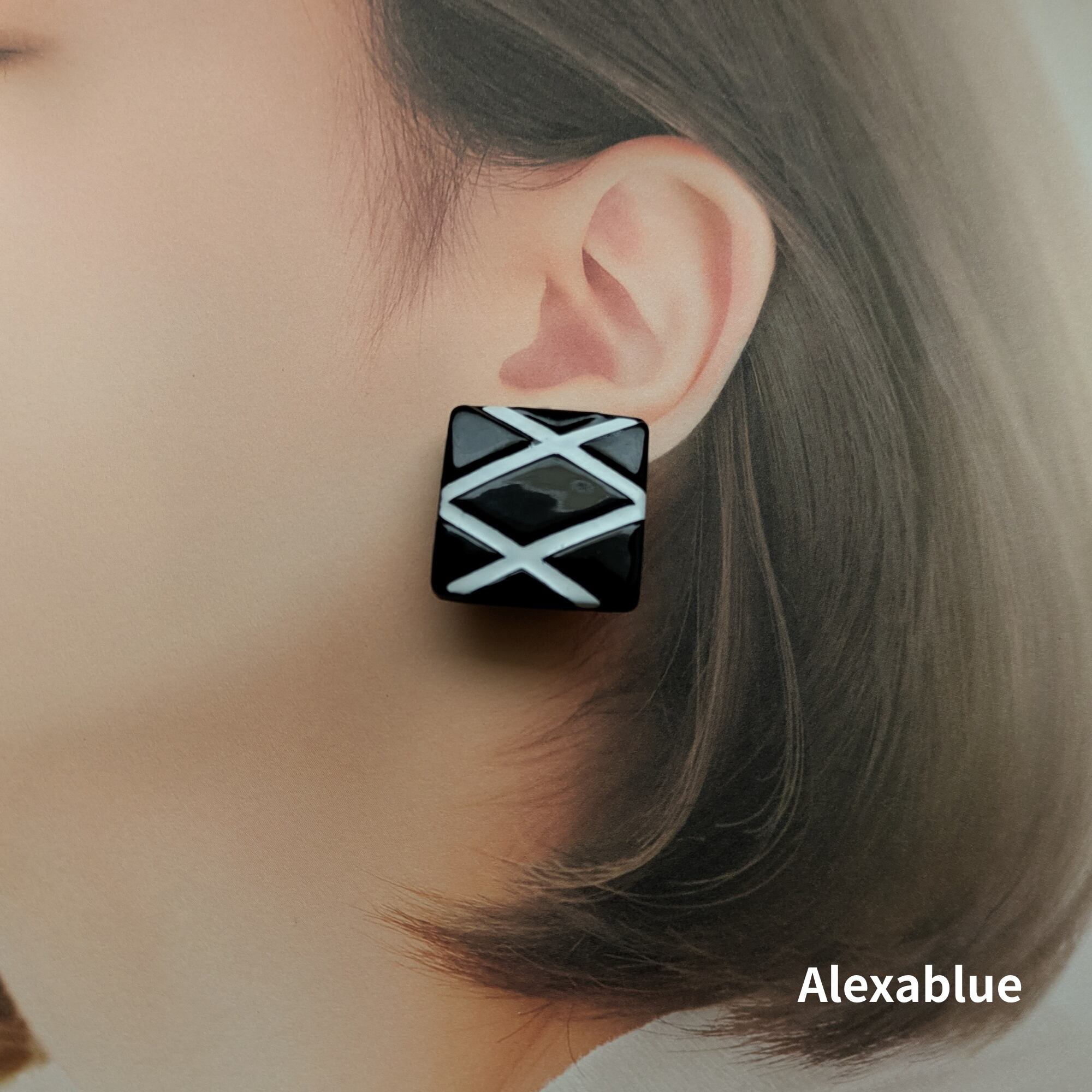 #アンティークイヤリング #モノトーンアクセサリー #スクエアイヤリング #ヴィンテージジュエリー #Alexablue