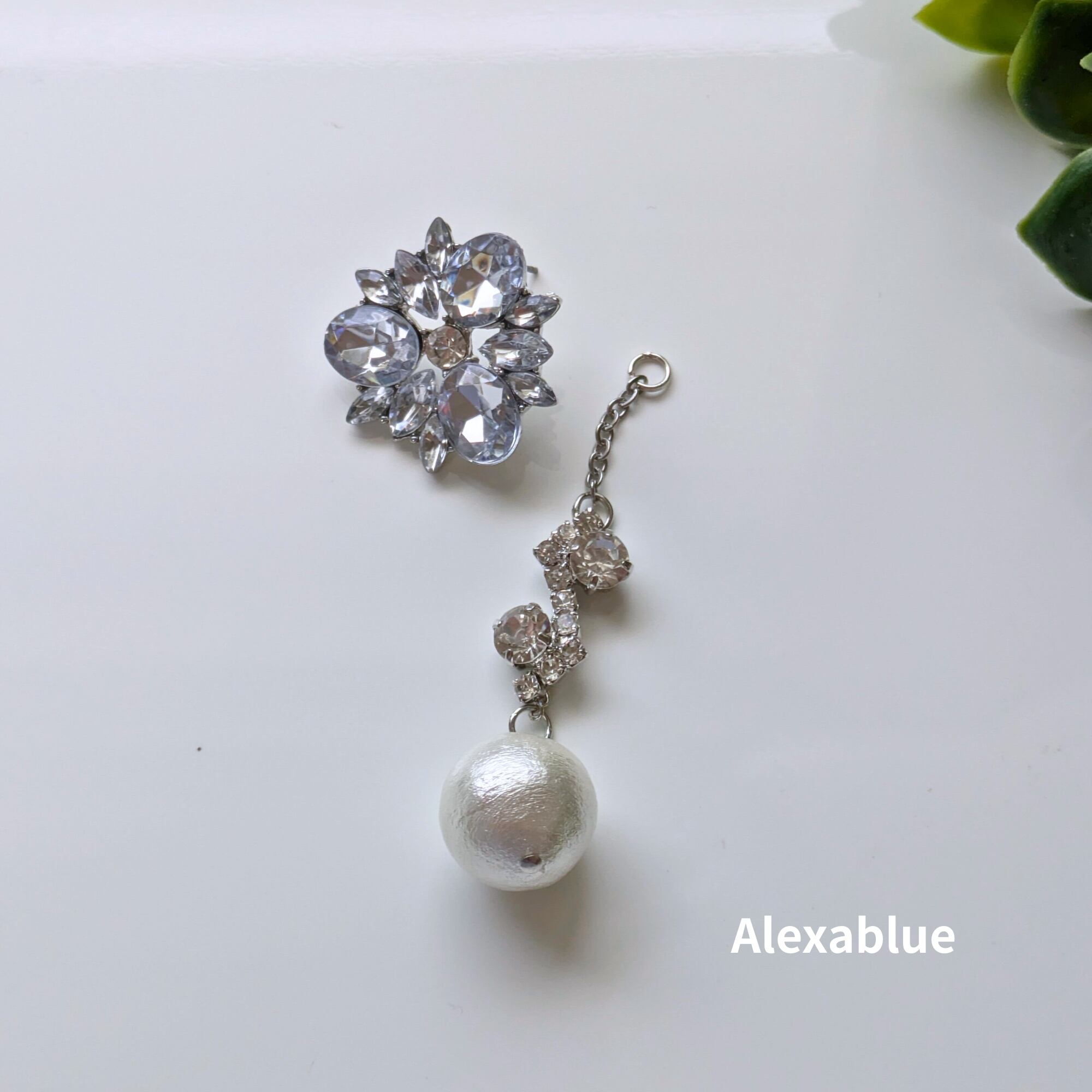 きらきらフラワービジュー×コットンパール 2wayピアス|ウェディング・パーティー向けゴージャスアクセサリー