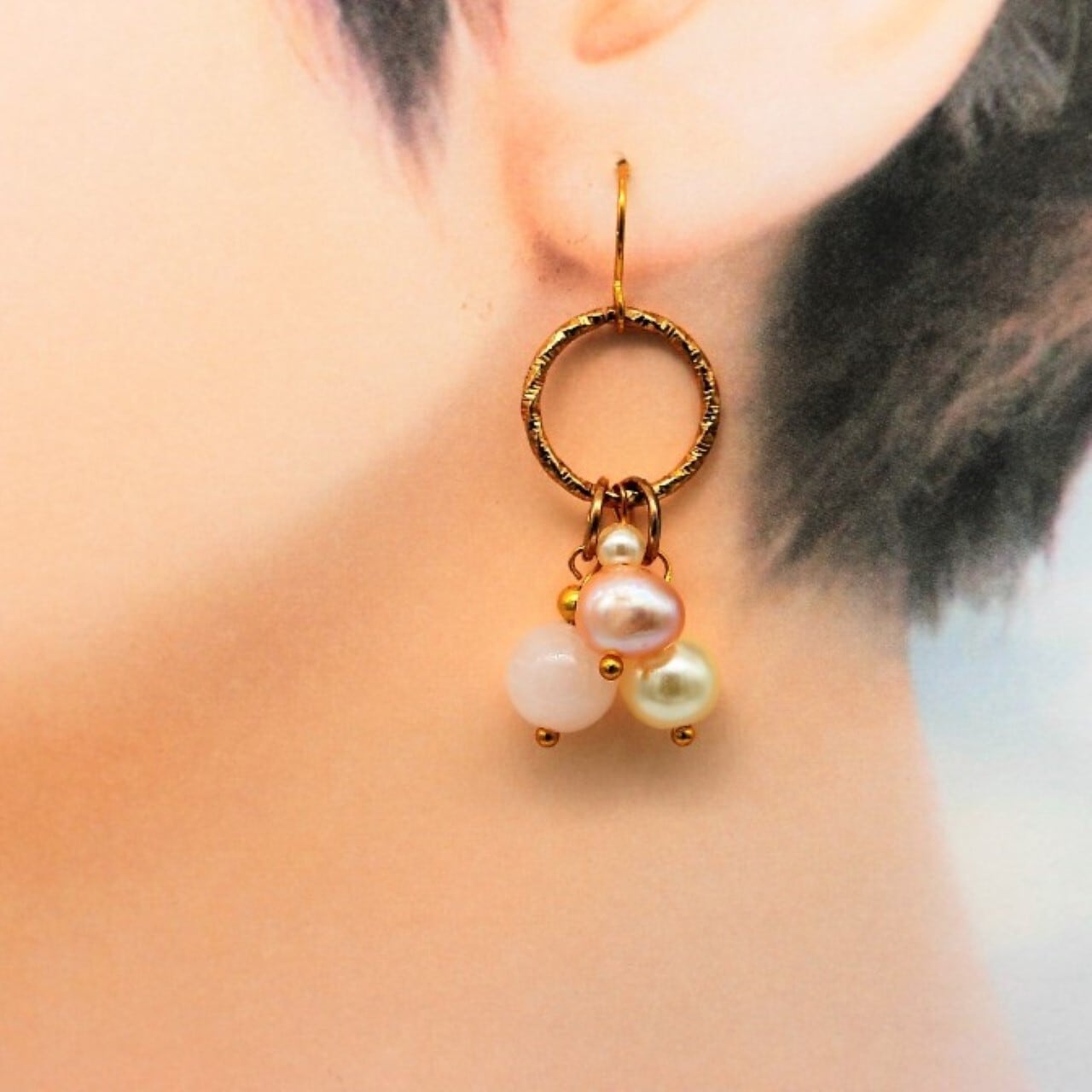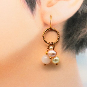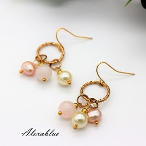 素材:ローズクォーツ(天然石)、淡水パール、ガラスパール、GPフック
