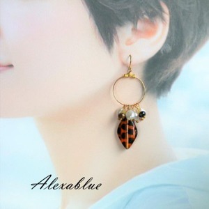 天然石レオパード ケシパールピアス ヒョウ柄ピアス 11月誕生石