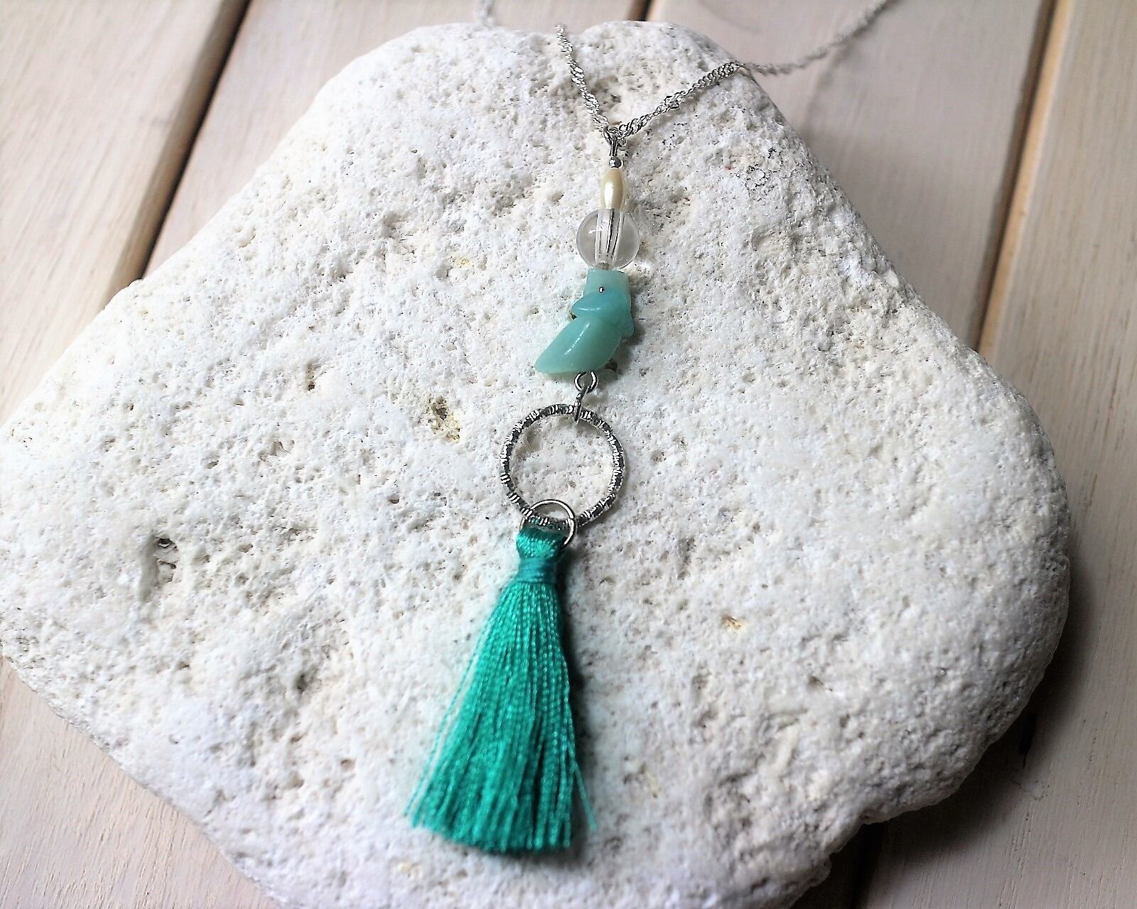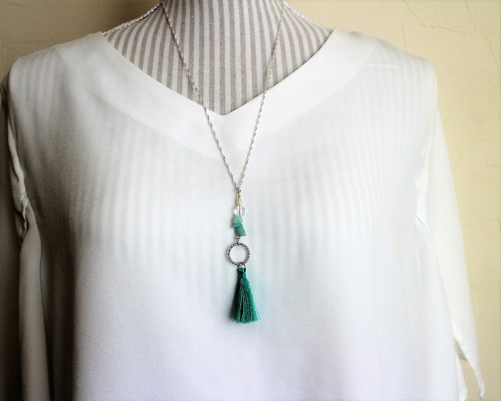 アマゾナイトタッセルネックレス Silver925 ロングネックレス 大人可愛いネックレス おしゃれネックレス プレゼントアクセサリー プレゼントネックレス 周りと被らないアクセサリー