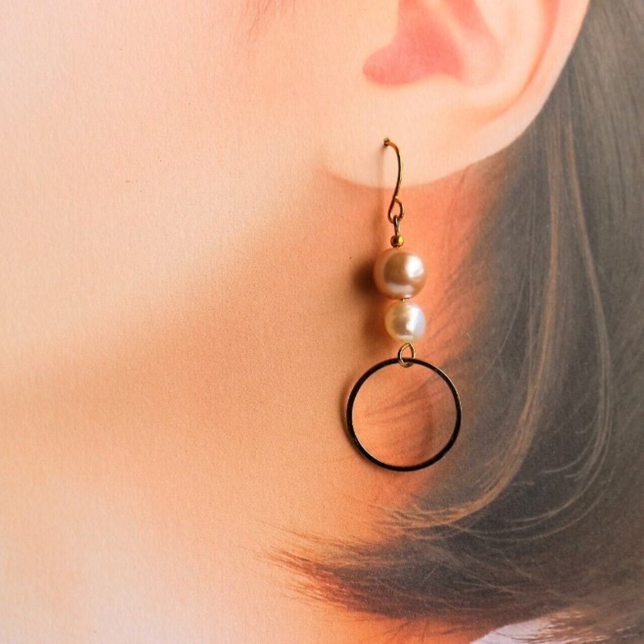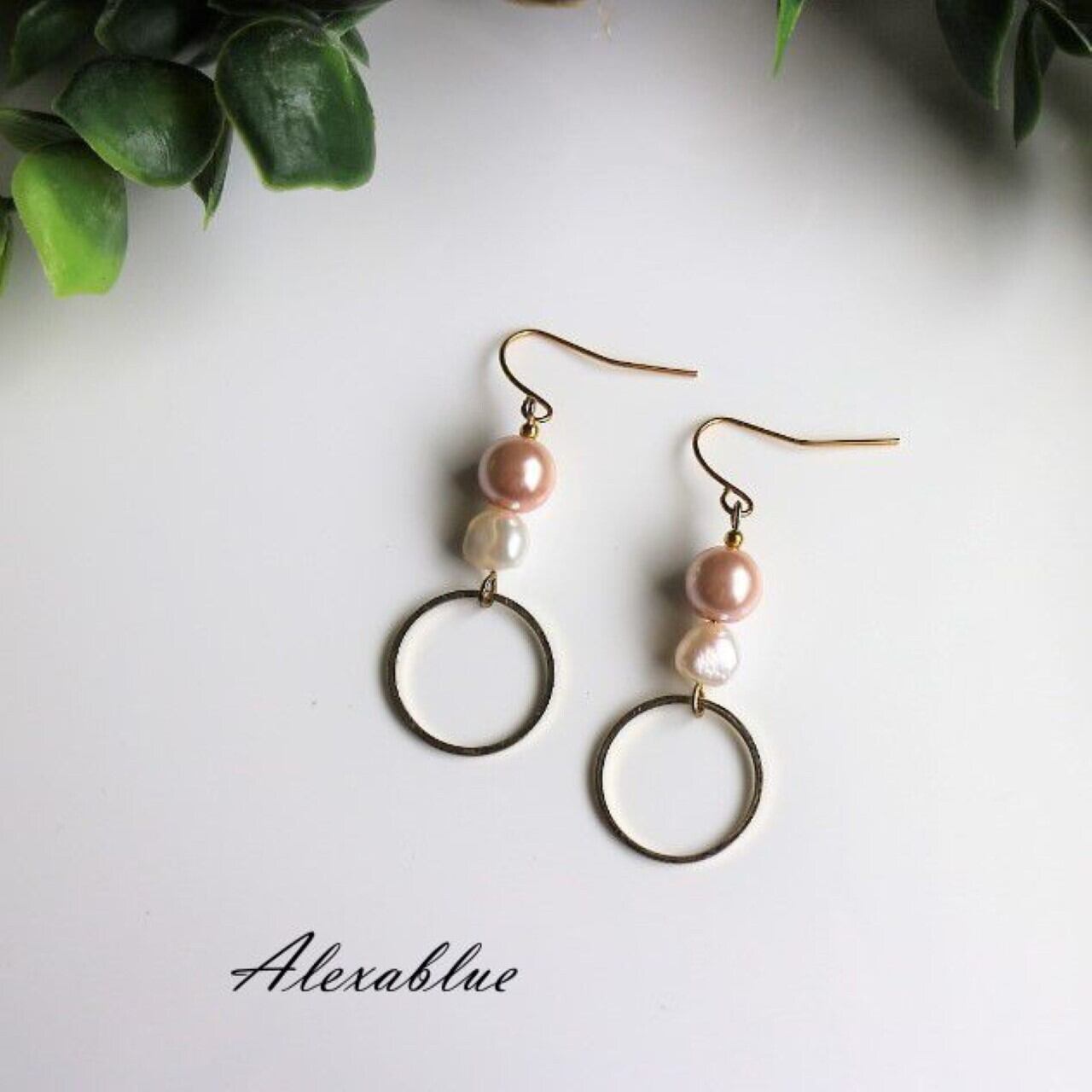 素材:モスピンクパール、淡水パール(ホワイト)、サークルモチーフ、GPフック